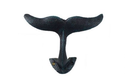 Rustic Dark Blue Whitewashed Cast Iron Dolphins Wall Hook 6