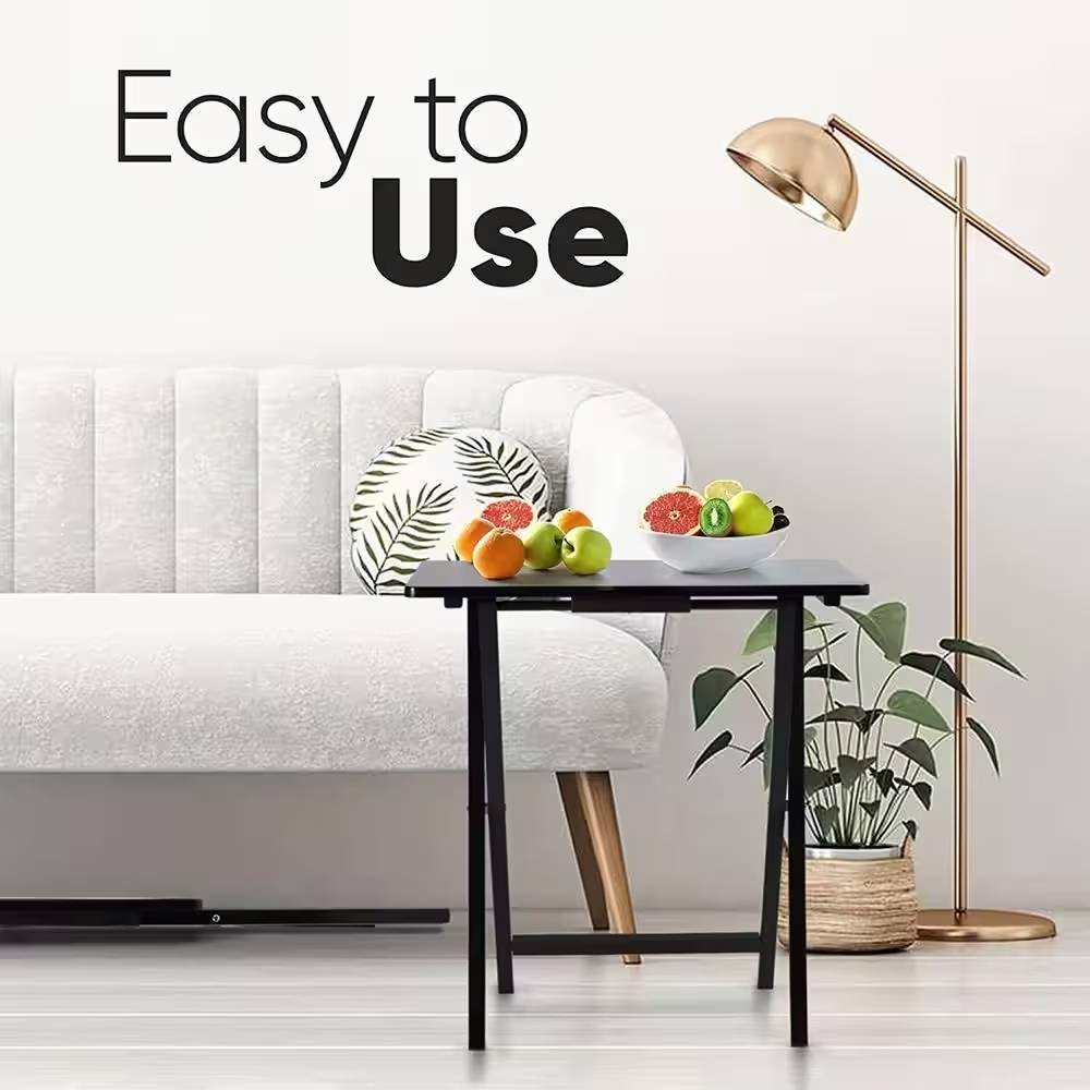 • Watch your favorite show while eating a delicious meal, or enjoy a late-night snack with this 2-piece set of multifunctional folding table trays