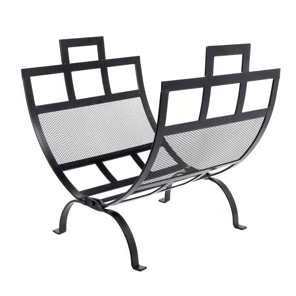 • Heavy Duty 17-inch Black Metal Firewood Log Rack with Removable Canvas Tote