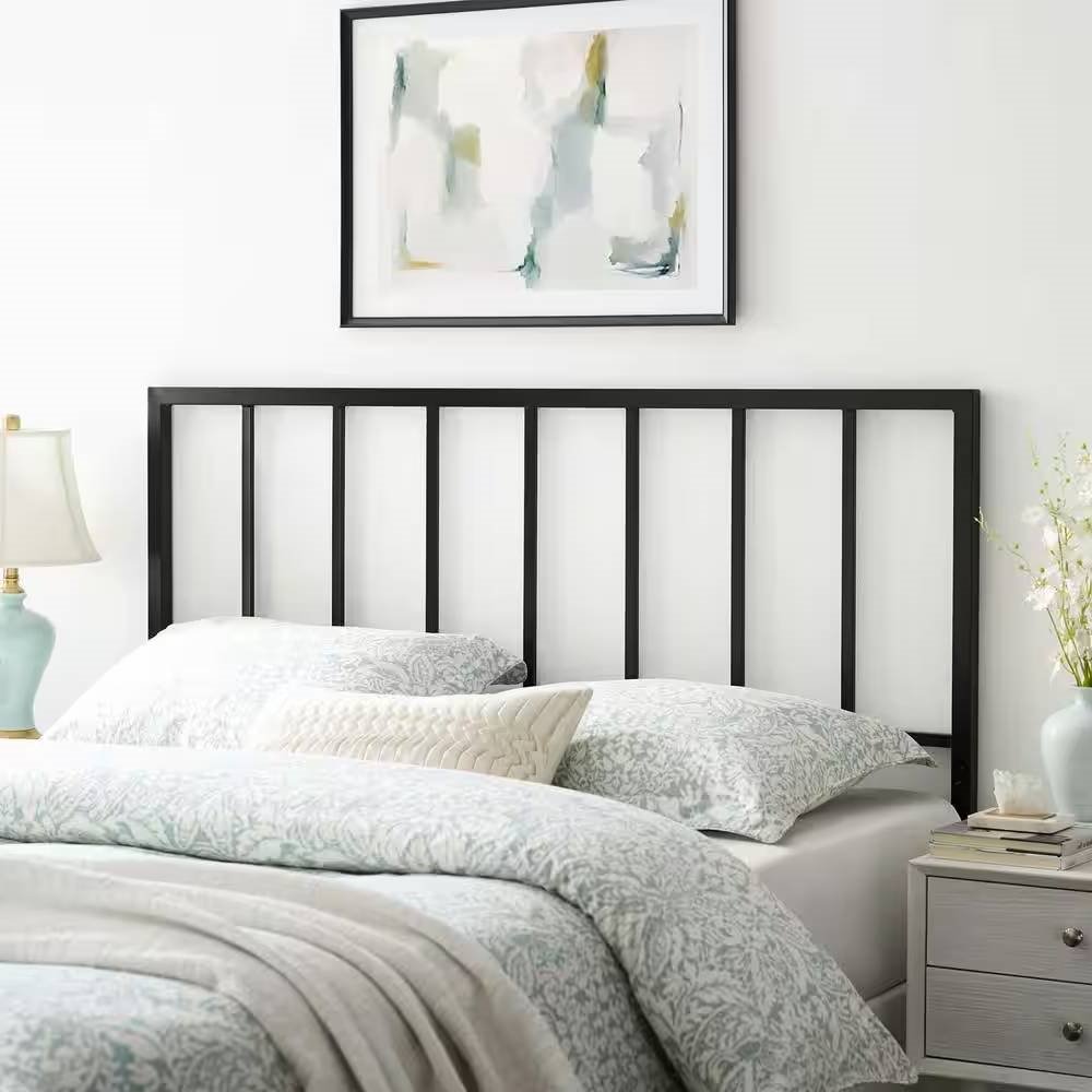 Elevate the look and feel of a teenager's bedroom or guest bedroom with the Full size Modern Classic Black Metal Headboard. Featuring a streamlined silhouette with squared lines and spindle detail, this Full size Modern Classic Black Metal Headboard is a timeless design with a contemporary feel. Durable iron metal with a powder coated finish makes up the frame of this headboard for a sturdy construction that lasts. Create an aesthetic backdrop for all kinds of bedding styles with this modern spindle headboard suitable for most full bed frames. Assembly required.