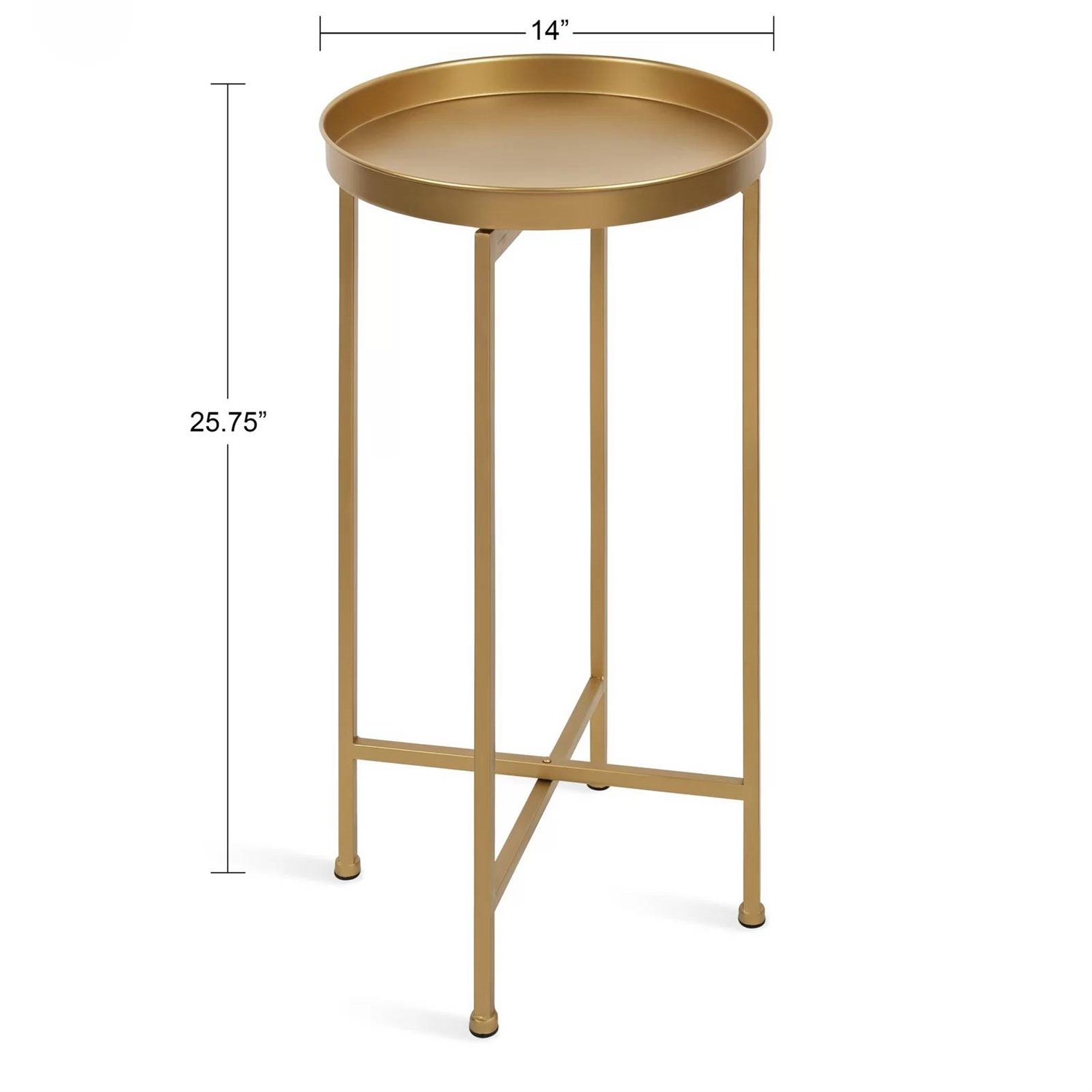 • Classic Gold Finish Metal Round End Table Nightstand with Removable Tray Top