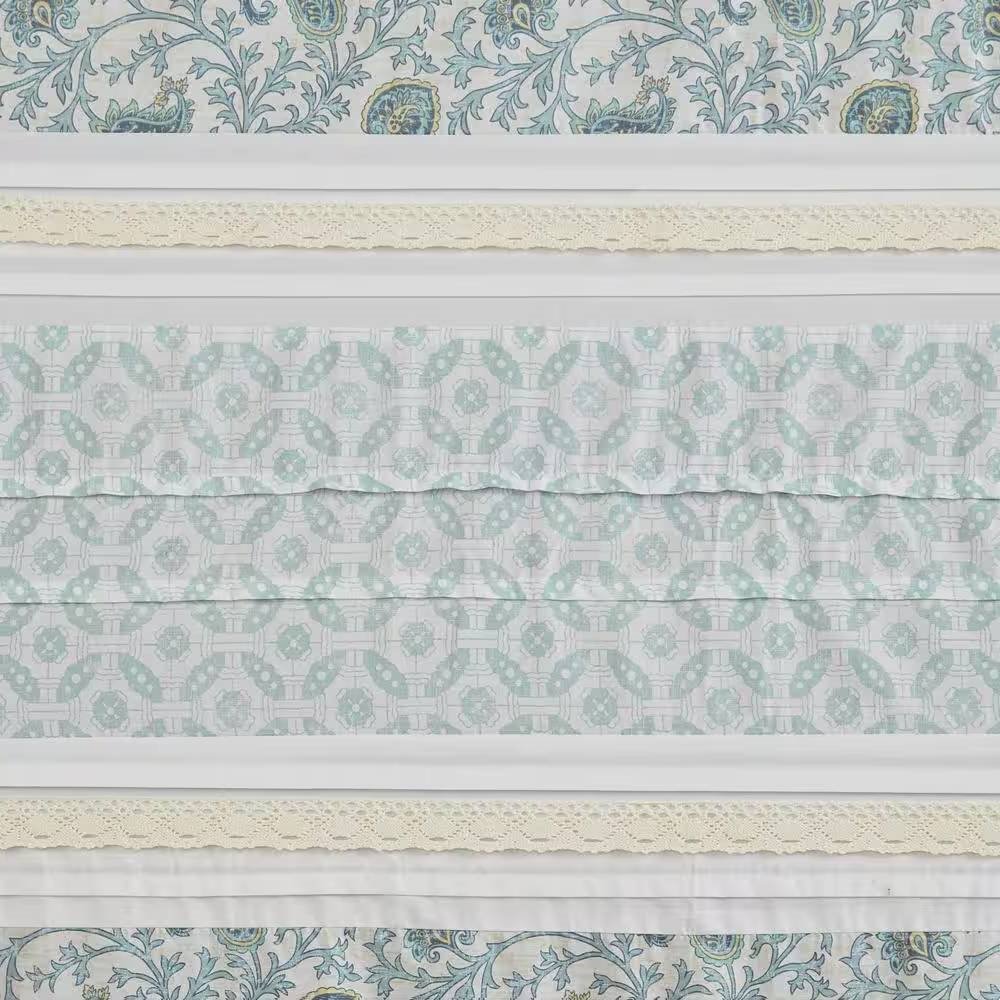 For a charming and stylish touch to your bathroom, this 72 x 72-in Cotton Shower Curtain with Teal Blue Grey Cream White Paisley Pattern holds all of the perfect elements to do shabby chic the right way. A mixture of coral, orange, and hints of green are printed in a paisley design alongside pin tucked white fabric that is separated by beautiful lace taping. Finished with 12 button holes at the top makes this shower curtain easy to assemble hooks and simply hang on any standard rod (hooks and rod not included). This shower curtain is also OEKO-TEX certified, meaning it does not contain any harmful substances or chemicals, ensuring quality comfort and wellness. Each shower curtain measures 72x72" and is machine washable for easy care; to keep this shower curtain in the best condition a water repellant liner is highly recommended (liner not included and should be purchase separately).