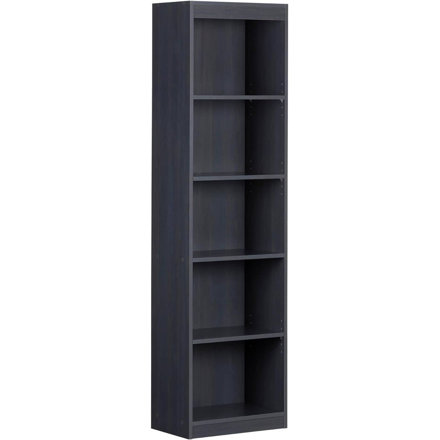 Ideal for your binders, books or decorative items, This Narrow 5-Shelf Bookcase Slim Storage Shelving Unit Dark Blue Black Wood Finish can meet all your storage needs, Even in tight spaces. Both functional and attractive with its sleek contemporary styling, this bookcase is sure to enhance the look of any room in your home. 5-Year limited all our products meets or exceeds North American safety standards and our packaging are tested and certified to reduce the risk of damage during shipment. This item is shipped in 1 box, make sure to have a friend with you. Assembly is required by 2 adults and tools are not included. If you have questions regarding this product or need assistance do not hesitate to Contact South Shore furniture 7 days support. This product is made in North America with laminated particleboard. Accessories not included.