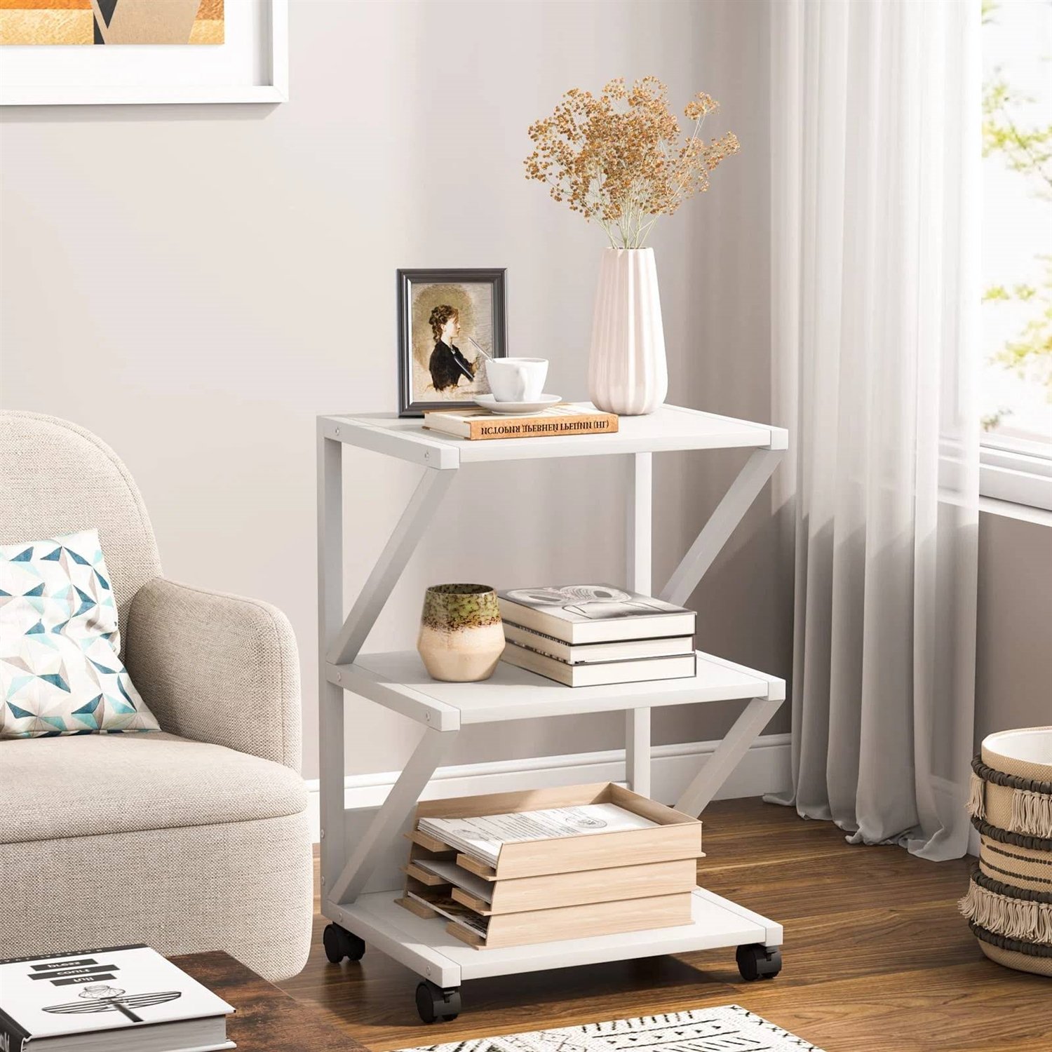 Modern 3-Shelf White Metal Wood Printer Stand Rolling Home Office Storage Cart