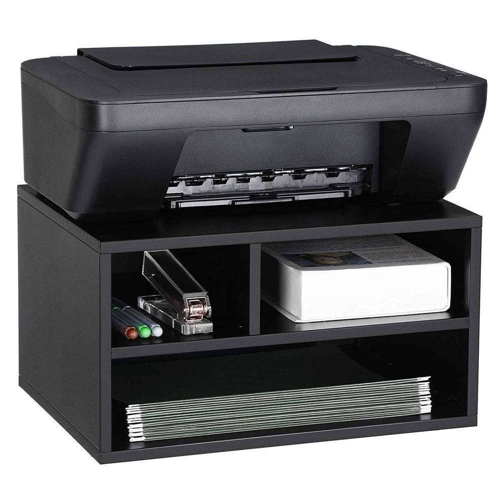 A printer that leaves no place for other office supplies? Lift the printer with this Modern Sturdy Black Metal Office Printer Stand with 2-Shelves and keep your office supplies in order. You'll wonder: Oh, is my desk bigger? Sometimes, simplicity can win the heart. Even with a simple design, this steel printer stand is robust and stable; its top surface can hold up to 110 lb, and its middle shelf can hold up to 33 lb. 3 open compartments with different sizes accommodate A4, A5, and legal size papers and a stapler; or, you can use it as a simple rack for books, calendar, or potted plants. Do you worry about complicated assembly? No problem. With a simple design, numbered parts, and illustrated instructions, youíll assemble this printer stand with ease. A small helper can keep your office tidy, like this printer stand; together with papers, itíll witness the moments you progress and accompany your every workday in the future.