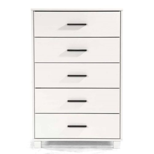 Modern Farmhouse Solid Wood 5 Drawer Bedroom Chest in White Wooden Finish