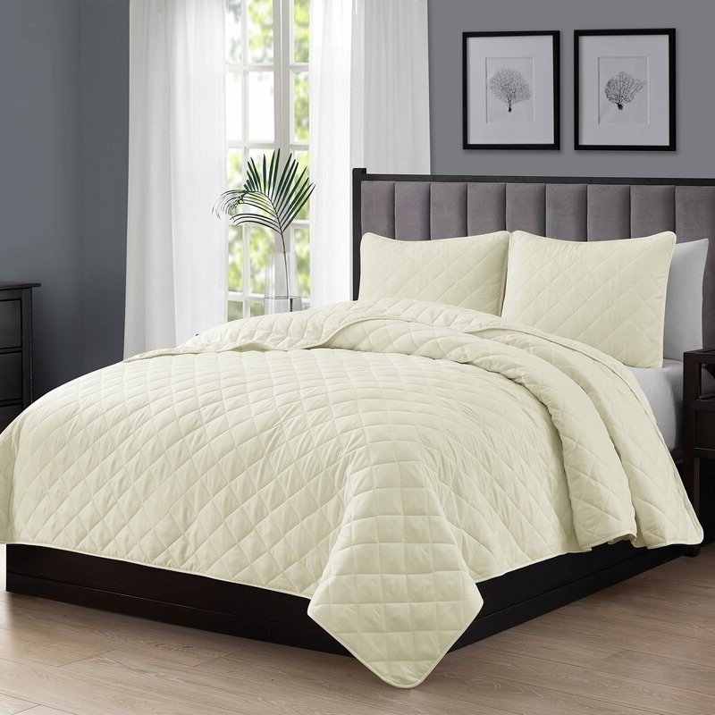 Twin/Twin XL 2-Piece Ivory Microfiber Reversible Diamond Quilt Set