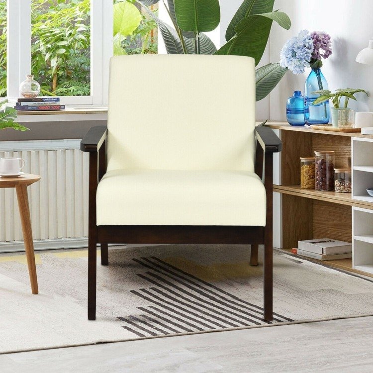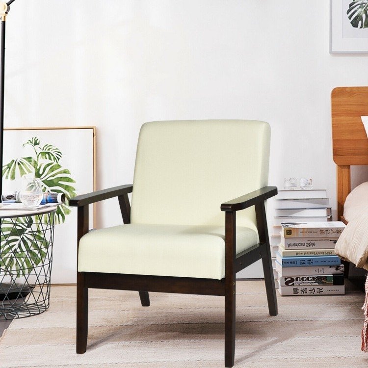 Sit back and relax in this Retro Linen Wide Accent Chair w/ Espresso Rubber Wood Frame - Off White. Ergonomic armrest is designed for relaxing your arm and hands. Wide back design can support your spine nicely and distribute pressure evenly when you lean on it and the chair is equipped with antiskid foot pads to prevent the floor from being scratched. Made of natural rubber wood frame, this accent chair is firm and wear-resistant for long service time. It has no burr and no smell for safe use. Thanks to premium material and sturdy structure, it can withstand up to 330 lbs. without wobbling. The seat and back are filled with high-density sponge, which is soft enough for you to enjoy yourself and relax your body after tired work. Besides, fine linen cover features gentle texture and friendly touch, providing you with extra comfortable feeling.