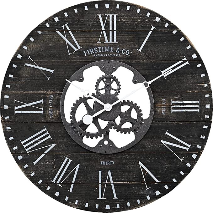 This Industrial FarmHome Round Oversized Wall Clock in Rustic Black features a 27 inch diameter and 2 inch depth, which makes it a great size for any space. Nothing ties a room together better than a great rustic clock. Easy to please, the easy-to-read numbers and eye-catching timepiece is the perfect addition to your living space. Finding the right clock to suit your style has never been easier thanks to our wide range of timekeeping solutions.