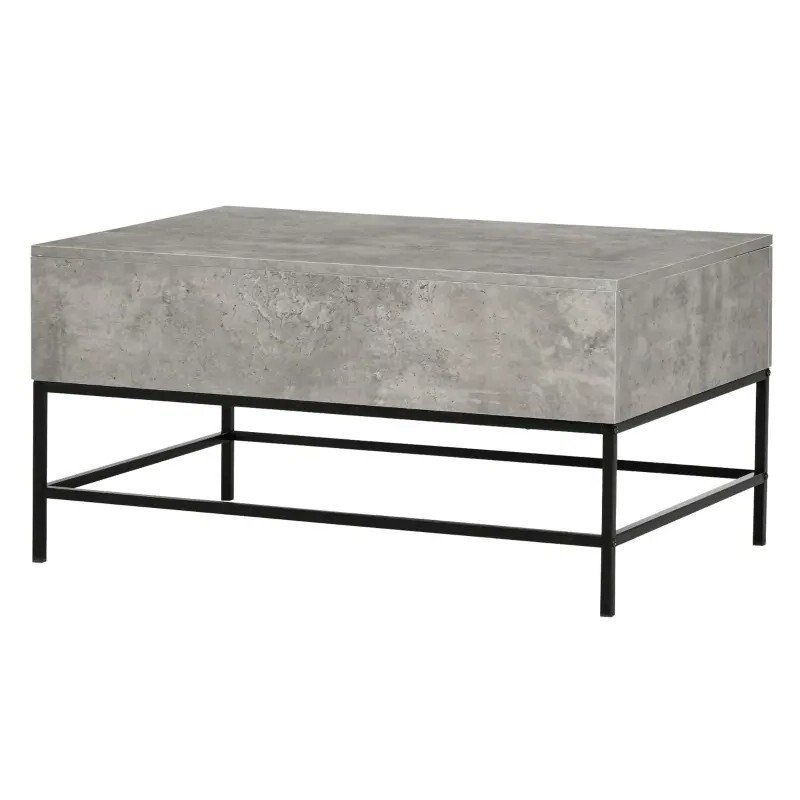 Modern Grey Lift Top Coffee Table w/ Hidden Storage Black Metal Legs