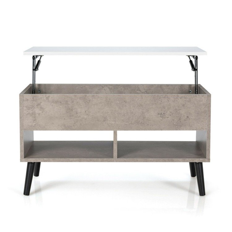 This sturdy multi purpose Mid-Century Lift-Top Coffee Table Sofa Laptop Desk in Grey Wood White Top Finish is a great addition to any sitting space. The top of this modern coffee table can be lifted up, with the durable solid lifting mechanism inside. The lifting mechanism is made of iron, ensuring long-term use. The springs at 2 sides help you to lift the top up and lower down, the height can be fixed at 24 inches to meet your various needs. Under the top, this table hides a large space to store your daily objects. You can put books, magazines, remote controls, keeping them in reach and away from dust. Comes with 3 open shelves at the bottom can collect blankets, toys, or snacks, improving space utilization.