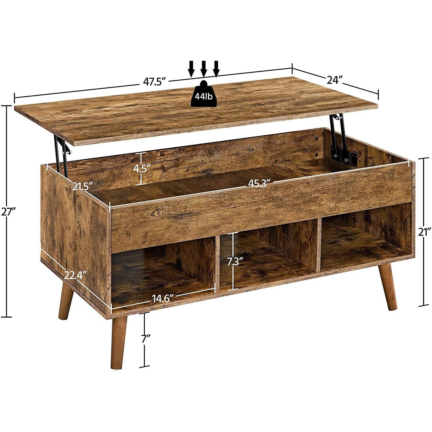 Mid-Century Lift-Top Coffee Table Sofa Laptop Desk in Rustic Brown Wood Finish