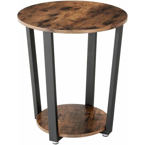 Give your home a farm home rustic touch with this Farmhouse Rustic Round Sofa Side Table Nightstand Storage Rack. Heavy Duty Matte Black iron frame. Square tables are ok with most, but this rustic round side table brings a breath of fresh air into your home. The retro vintage style exudes a touch of classic flair. This side table will accentuate an antique decoration in your home or a banquet of beautiful flowers with its black iron bars and dark wooden table top, a highlight for your living room, bedroom, office, or other spaces. Delivered to you in only 4 individual parts, so the setup is simple and fast.