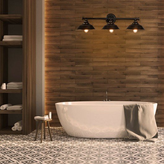 This three-headed dish cover wall lamp will not only illuminate your space but also illuminate your life.   It can be used not only as a lighting source but as a decorative piece of art. With golden edges it will perfectly fit any interior bringing it a vintage and industrial design. Any light bulb can be installed and used as long as it is compatible with the E26 base. Both incandescent and LED bulbs can be installed on our lamp. It's perfect for creating the perfect atmosphere in lofts porches cafes restaurants and other living and commercial spaces.   This will surely be your number one choice so don't hesitate and buy one now! The sturdy iron frame finish ensures that the lamp is corrosion and oxidation-resistant. The gold edges bring a classical appeal to any room. All connections and joints are carefully welded for your safety. The sturdy sconce base is made of metal which ensures its long-term service life. It is a perfect lighting source for living rooms bathrooms bedrooms and corridors. It can be used not only as a lighting source but as a decorative piece of art. The retro design gives a vintage and industrial look to any room. The assembly consists of only five installation steps. It comes with three 60-watt maximum incandescent light bulbs. Any light bulb can be installed and used as long as it is compatible with the E26 base. The lamp is UL certified.